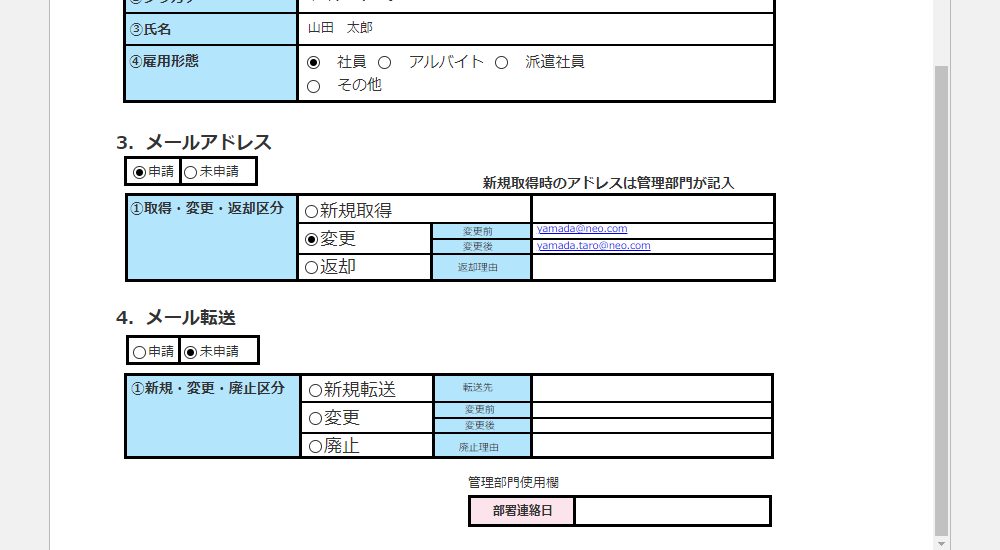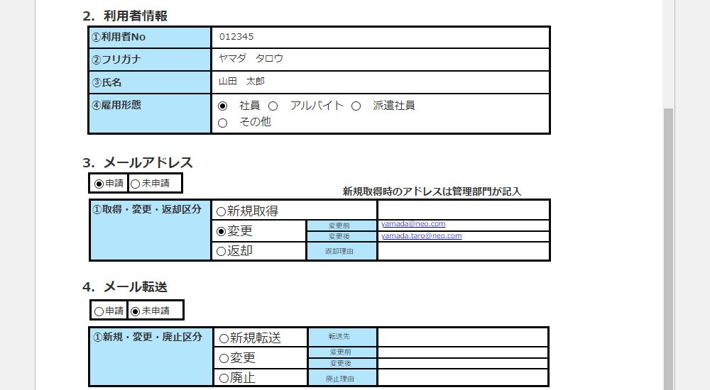 desknet's NEOのワークフロー機能と連携し、社内で利用するメールアドレスの申請を行うためのアプリです。