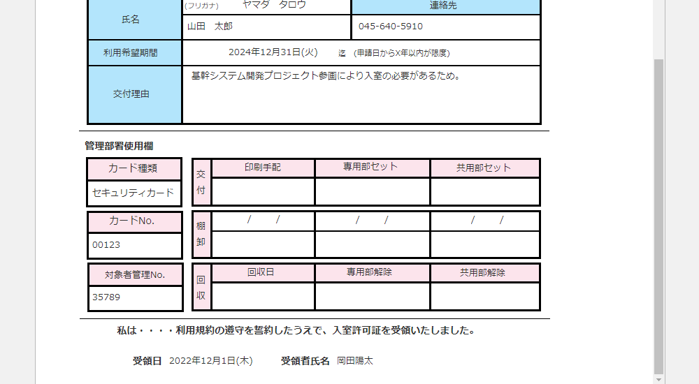 入室許可証(ICカード)交付申請書アプリ