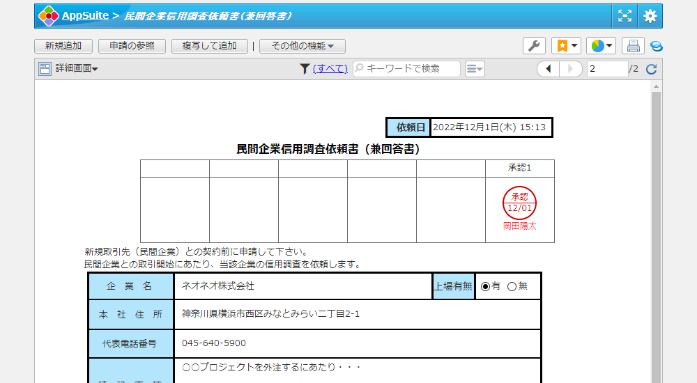 民間企業信用調査依頼書(兼回答書)アプリ