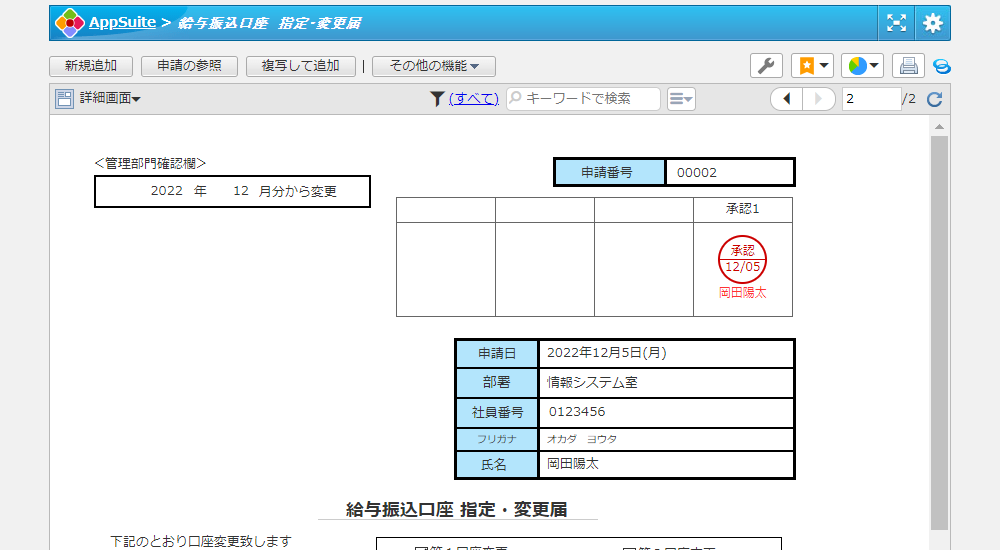 給与振込先の口座指定申請、変更の申請を行うためのアプリです。