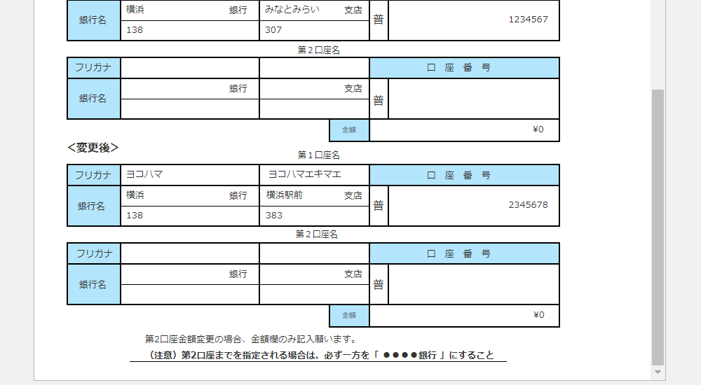 申請者は決められたフォーマットに金融機関、口座に関する情報を入力するだけです。アプリで管理することで、記入漏れによる手戻りや、用紙の紛失を防ぐことができます。