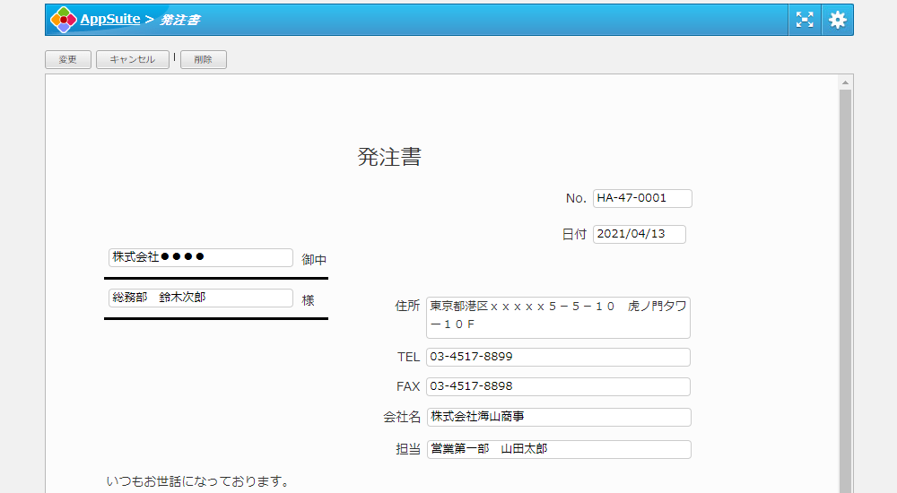 発注書の作成を行うためのアプリです。