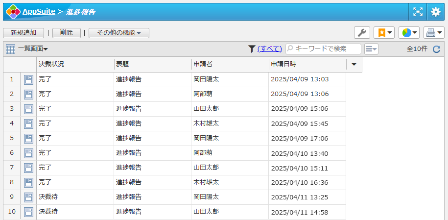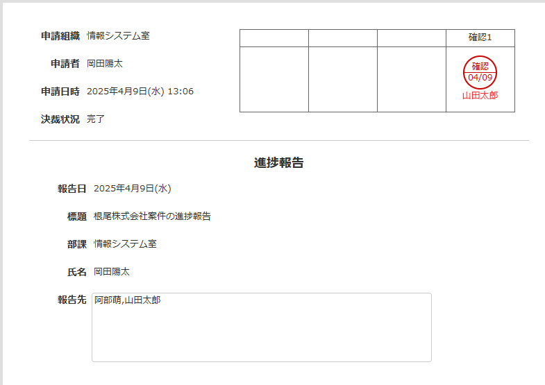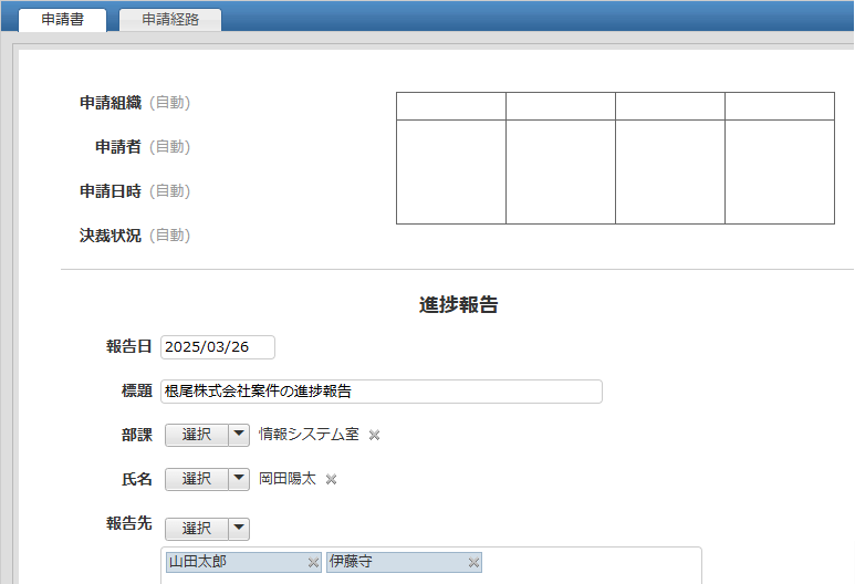 業務の進捗を報告するための申請書アプリです。