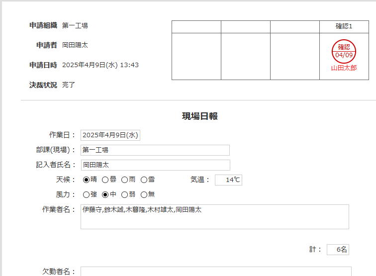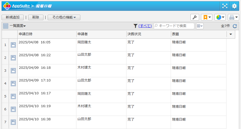 現場の作業内容や作業の進捗状況を報告するための申請書アプリです。
