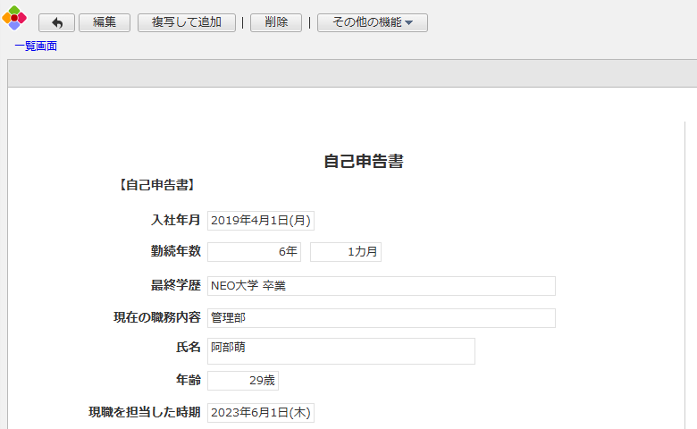 従業員の経歴や職務経験、現在の仕事に関する最新の状況を提出するためのアプリです。