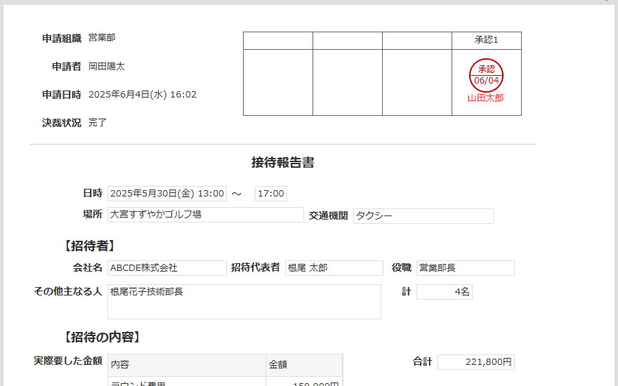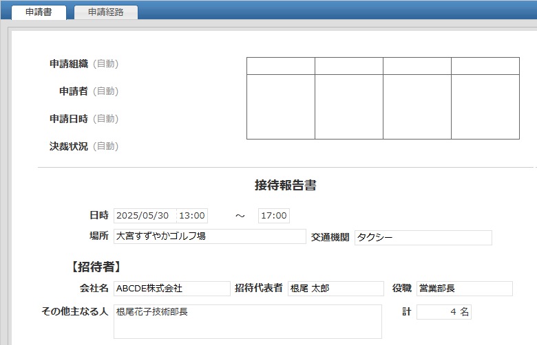 接待実施後の報告のための申請書アプリです。
