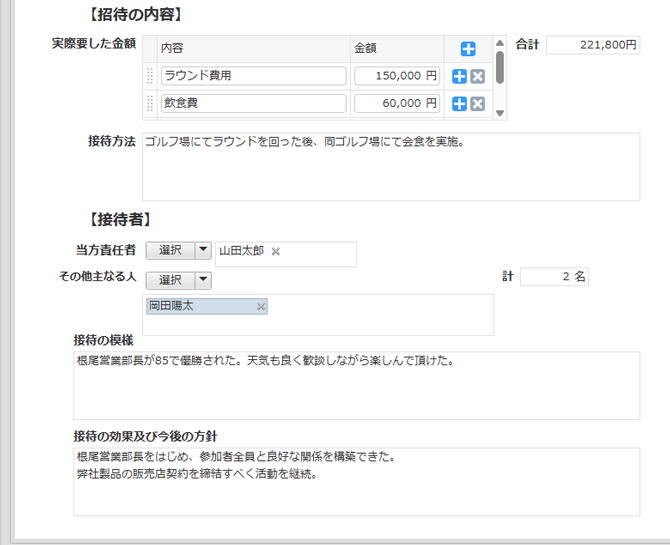 接待の目的ができたか、参加者の反応などを記録し、今後の対応方針の決定に活かすことができます。