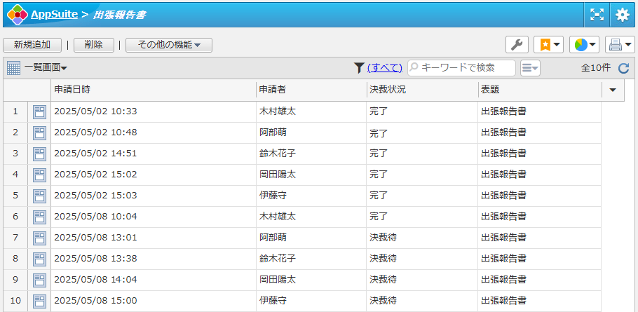 AppSuiteのアプリをワークフローに組み込んで申請書式として利用することができます。報告を確認するメンバーを経路に設定すると、提出後その相手に届きます。