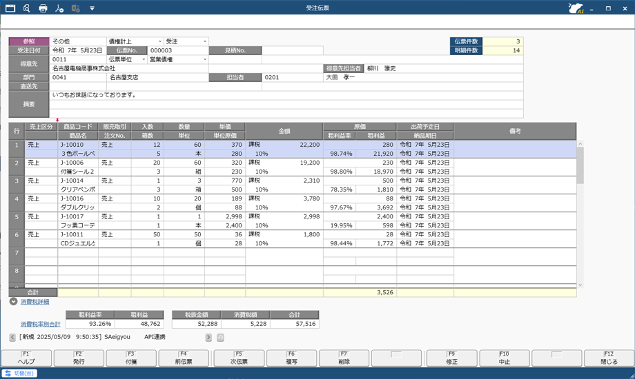 受注伝票に受け入れるテンプレートです。