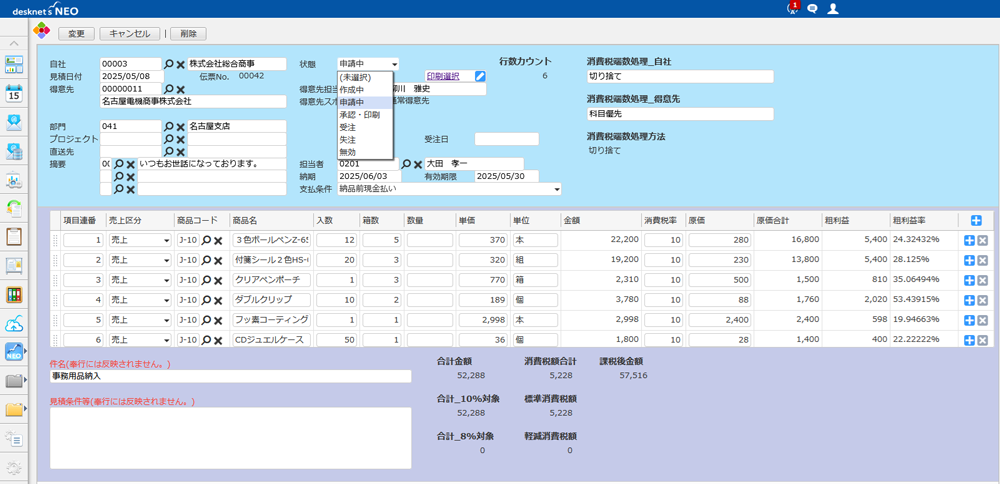 商奉行クラウドの見積機能をdesknet's NEO+AppSuiteで補うことで、安価に利用することができます。