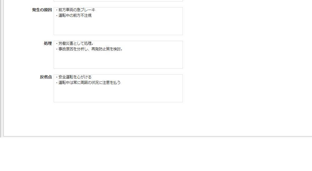 事故の報告履歴を各種条件で見返せるため、類似した問題発生時に参考にすることができます。原因と対策を残し、今後の対応改善に役立てることができます。