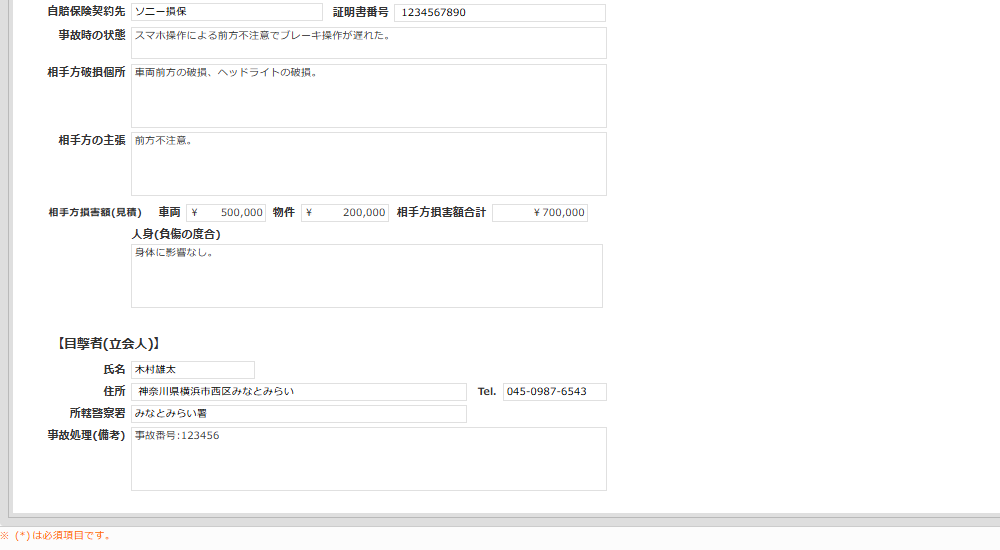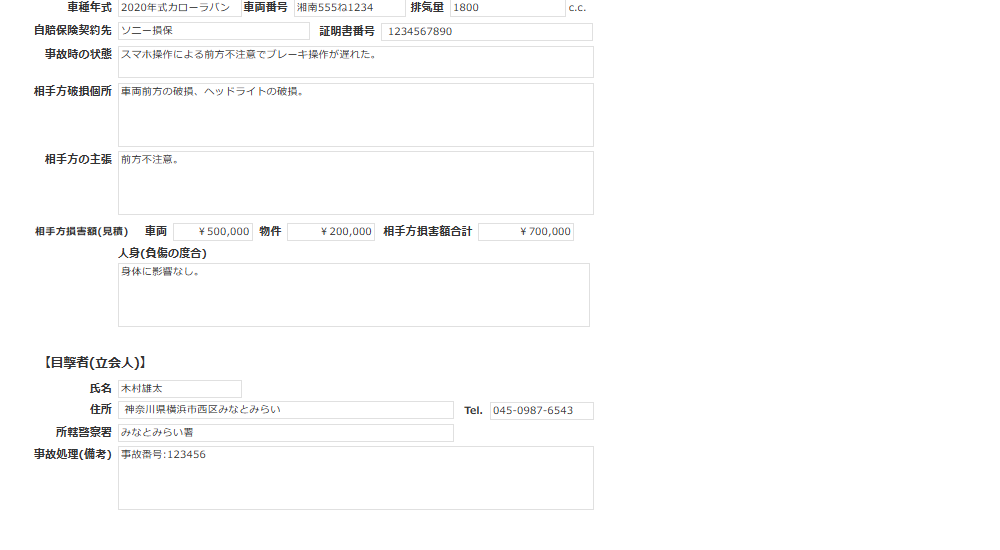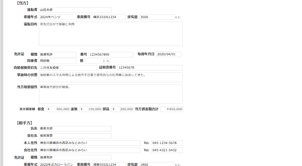 自動車事故を報告するための申請書アプリです。