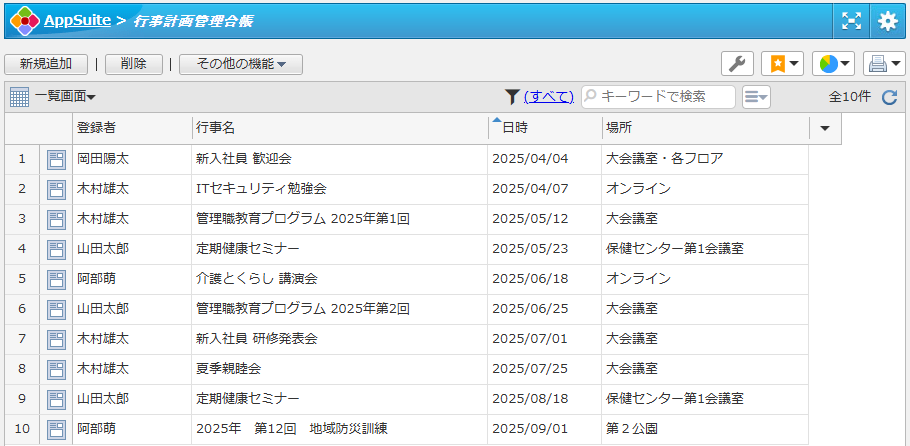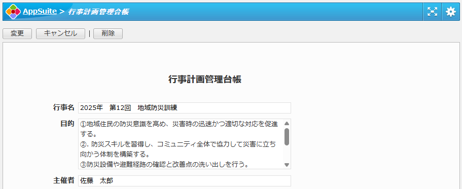 行事計画管理台帳アプリ