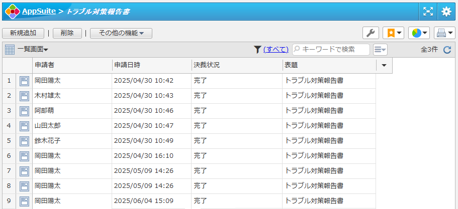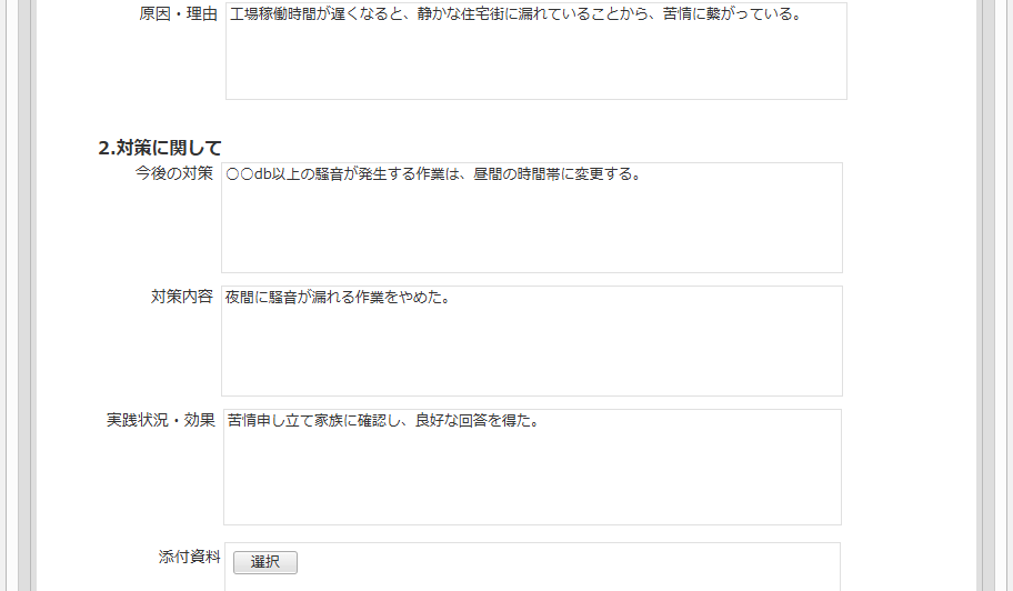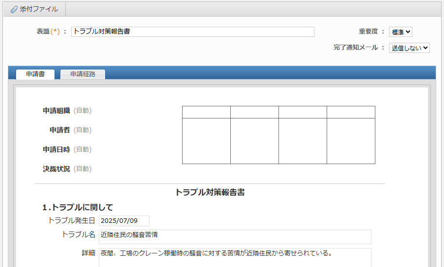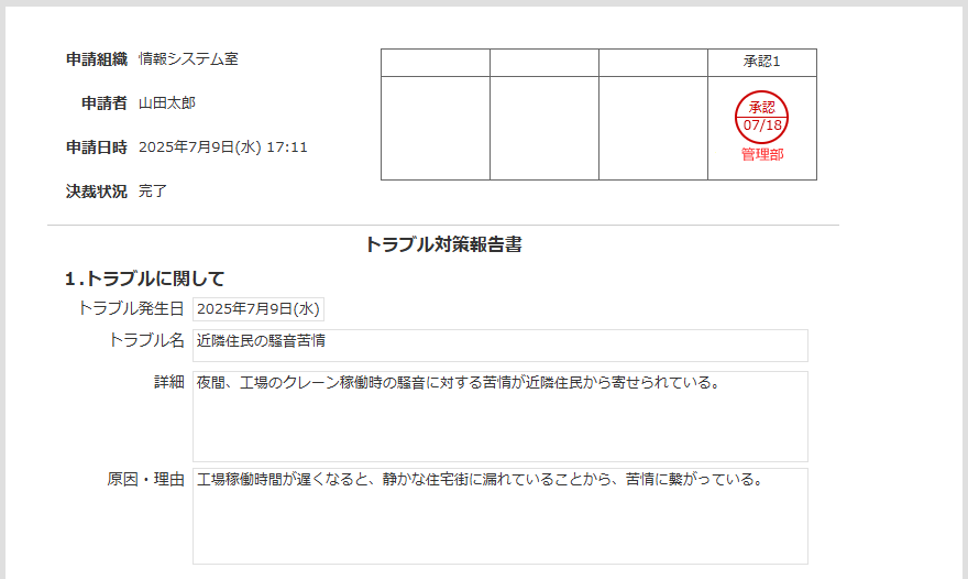 トラブルの詳細や対策について報告、申請を行うことができます。