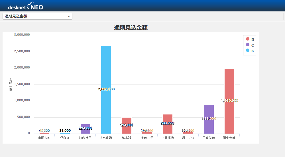 各種集計、グラフ化で、受注角度や実績の進捗が視覚的に把握できます。