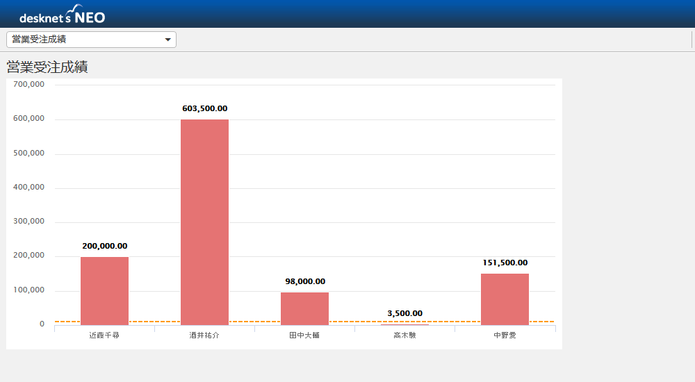 売上見込みのクロス集計、担当者別受注実績グラフを自動生成、データを視覚的にわかりやすく捉えることができます。