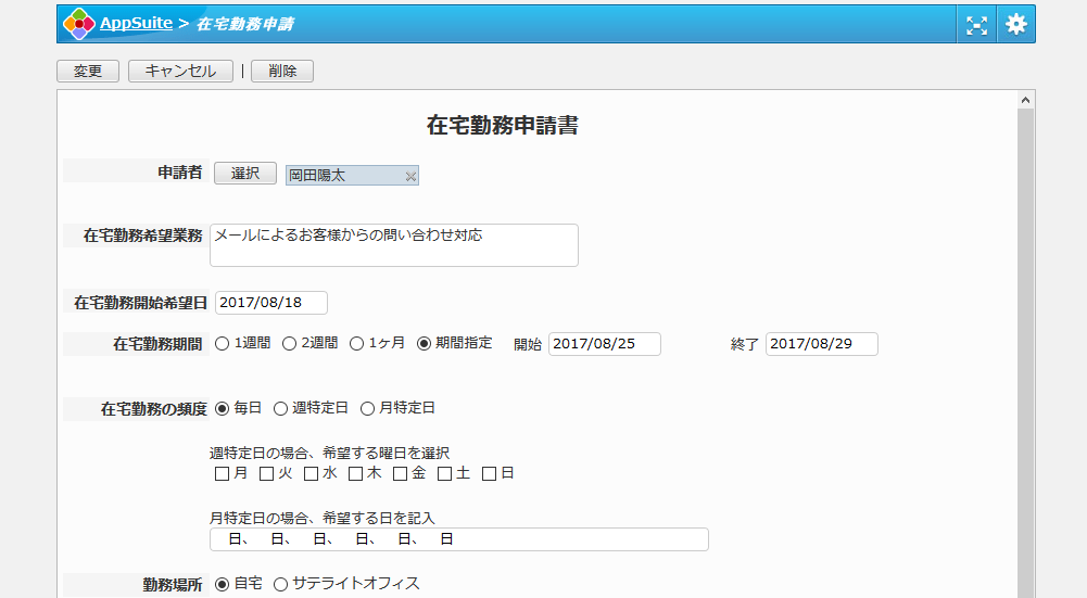 在宅勤務の申請を管理するためのアプリです。
