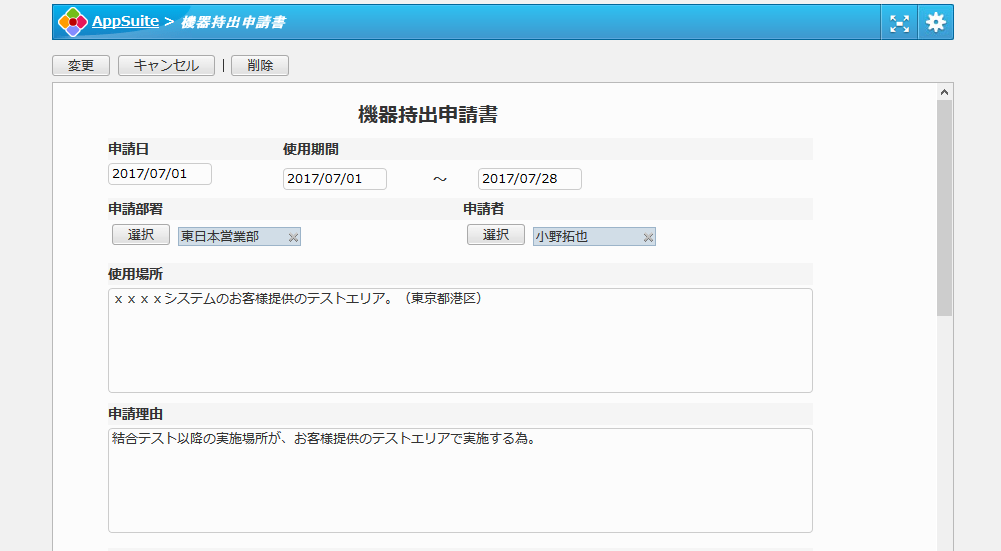 機器持出申請書アプリ