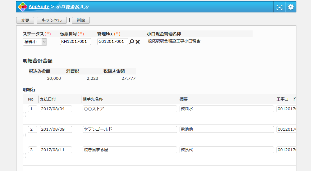 建設業の小口現金を管理するアプリです。