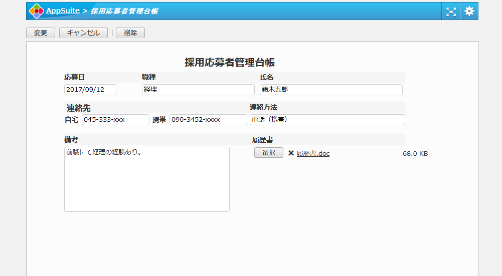 人事における採用応募者を管理するためのアプリです。