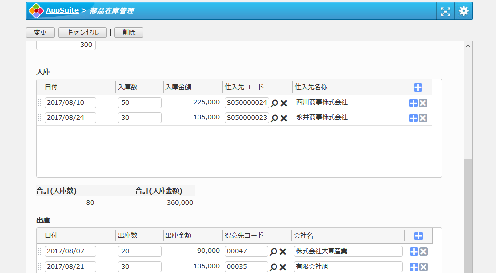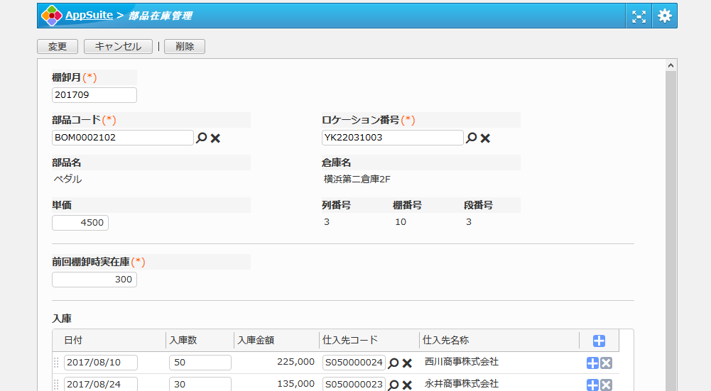 拠点ごとに部品の在庫を管理するためのアプリです。