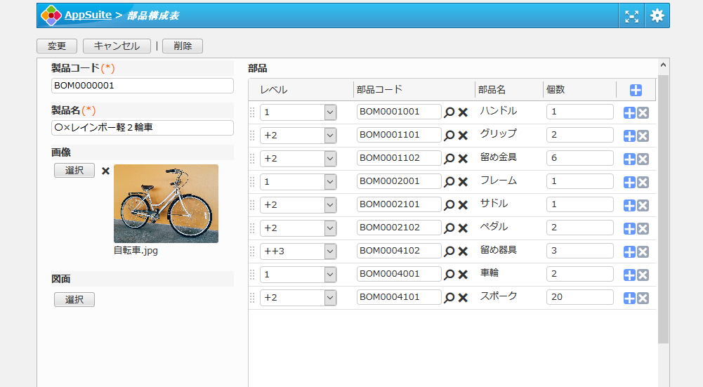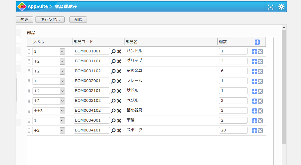 - このアプリには、部品表、部品構成表の2つのアプリが含まれています。