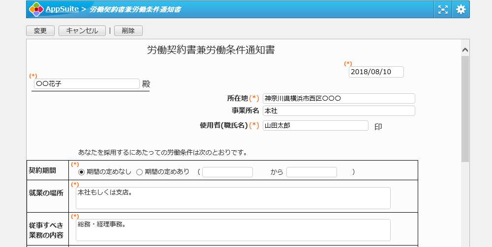 労働契約書兼労働条件通知書を作成・管理するためのアプリです。