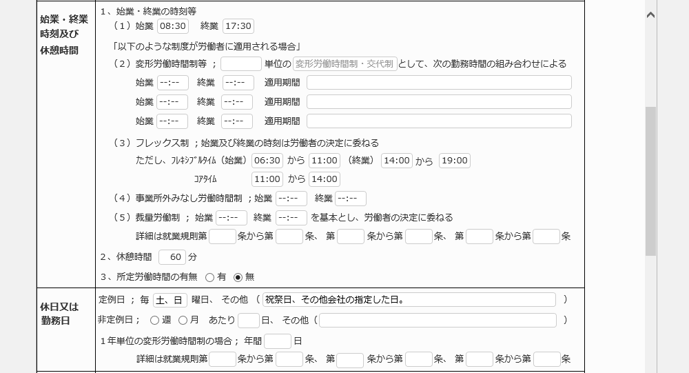 起票日、採用者名、代表取締役名、使用者(職氏名)、労働条件
