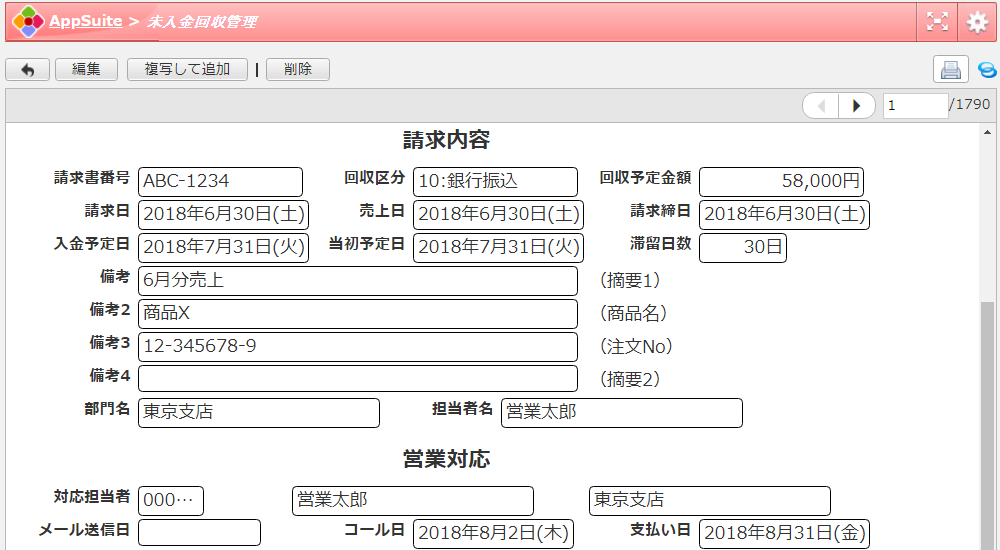 未入金回収管理は、AppSuite上で自由にカスタマイズできます。