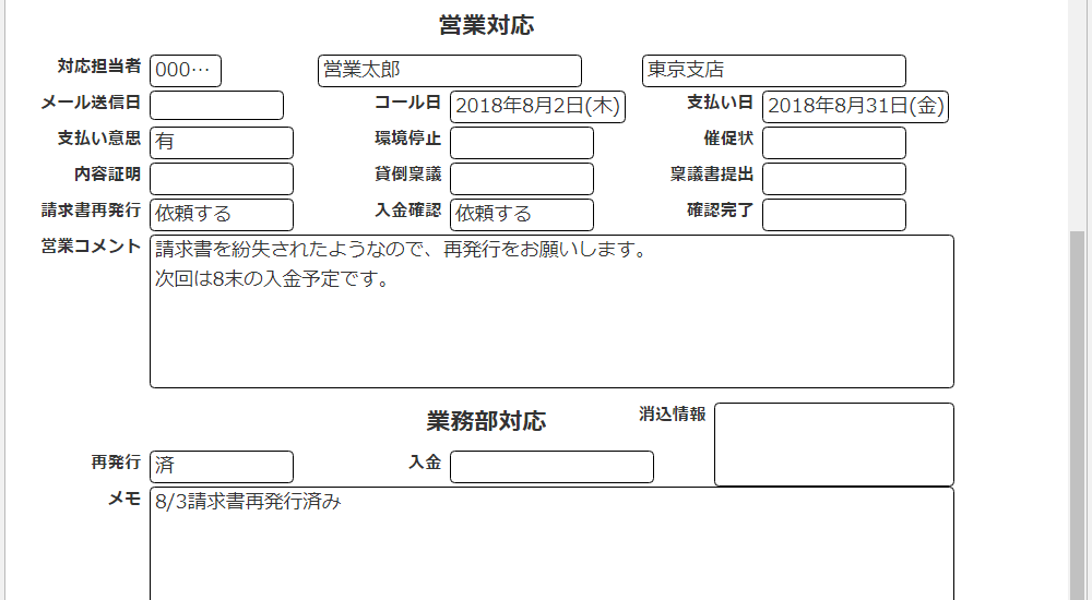 経理担当では督促状を発行したり、個別の状況を把握しながらの対応が可能となります。