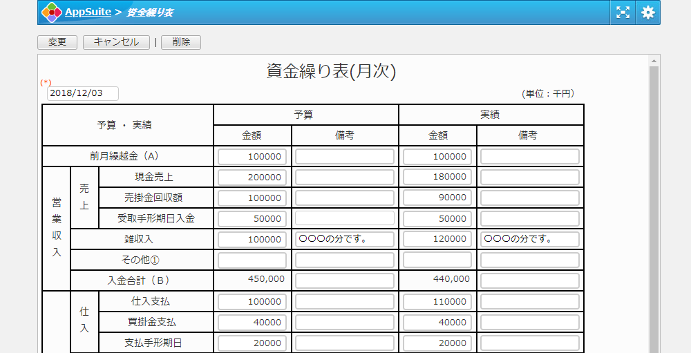 営業収入と支出それぞれの明細作成、収支過不足を自動計算し、予実管理と次月繰越金の管理が行えます。