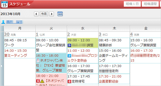 全社員の予定を公開。内勤部門の利用率が高いが、施工現場や移動が多い社員からPCのない場面でもdesknet's NEOを活用したいというニーズが高く、スマートデバイスの活用領域を広げてゆく方針である。