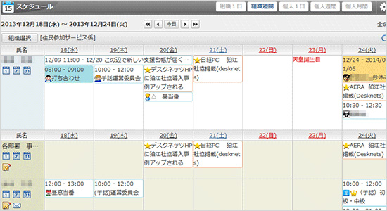 2003年にノートパソコンを常勤の職員全員に導入したことに合わせて、事業所内のネットワーク構築を行いました。社内のWebサーバーに事業所内ポータルをつくりCGIで掲示板(インフォメーション)や事業所のスケジュールを共有したのです。しかし、個人のスケジュール管理は各自にゆだねられていた為、充分な情報共有ができず、ネットワーク資産も100%活かしきれていないという、もどかしさや悩みを抱えていました。そのような中、グループウェアのメリットについて情報を得る機会があり、事業所に導入してはどうかと検討をはじめたのです。その時がdesknet's NEOを知る最初のきっかけでした。