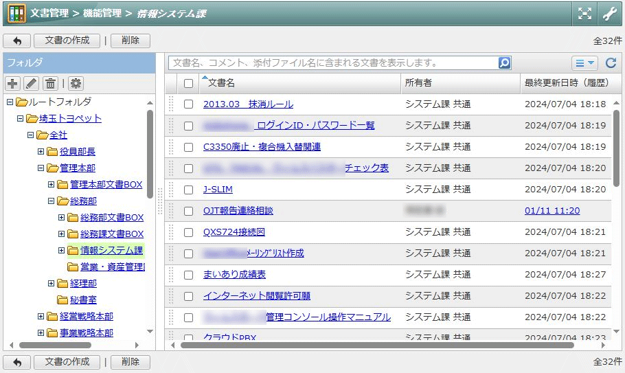 1)[文書管理]部門別で必要書類を管理し、会議資料の共有などにも活用。