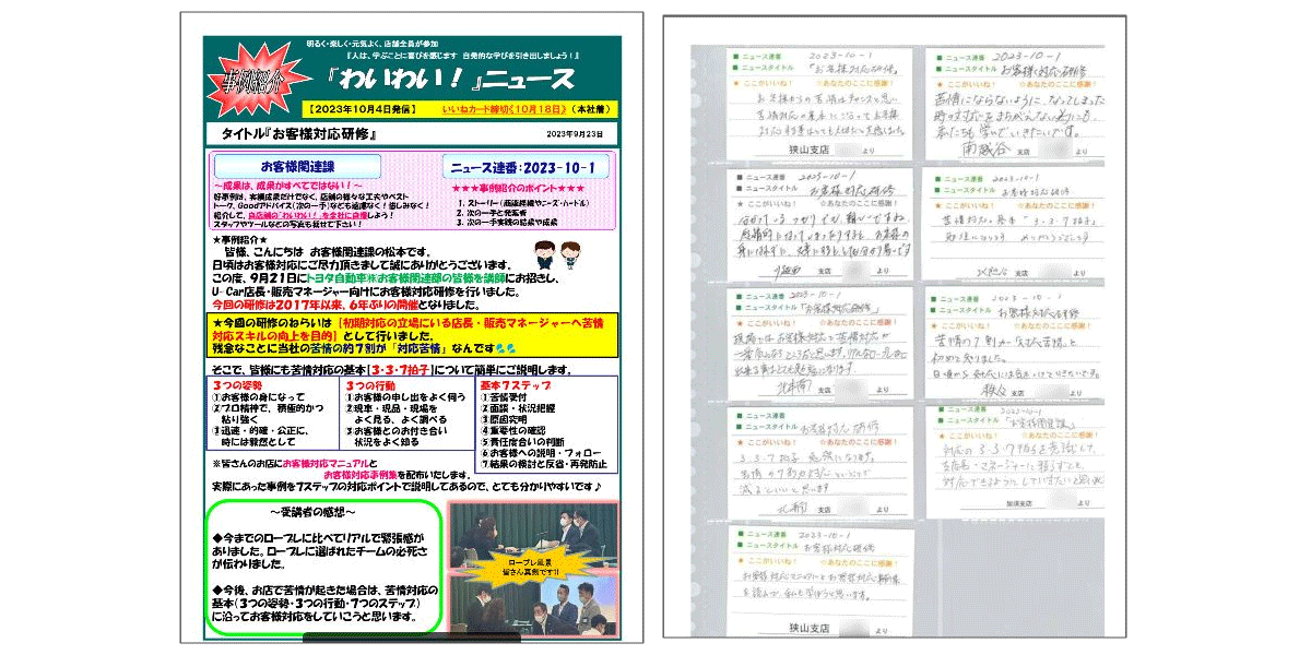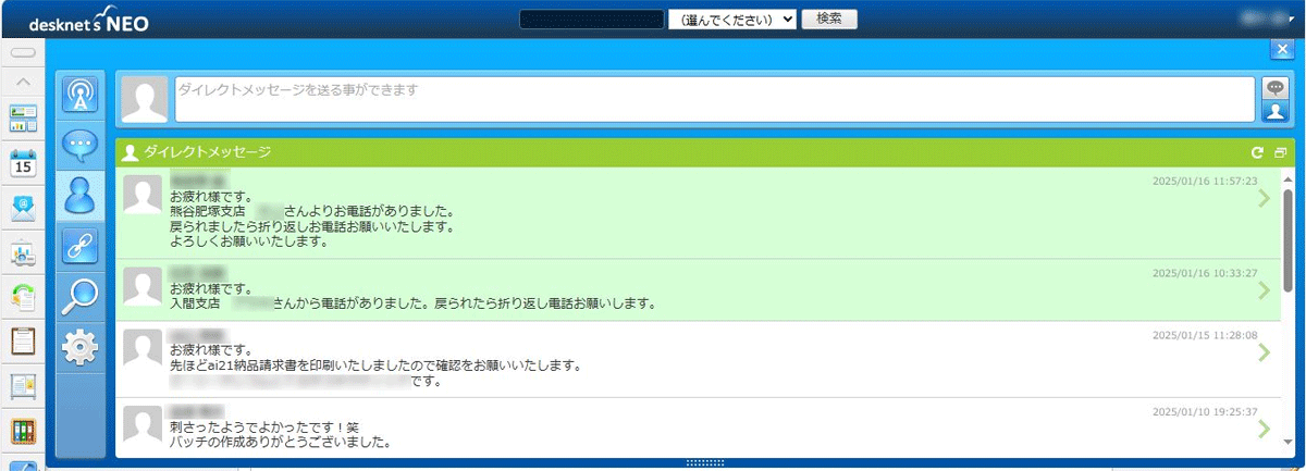 desknet's NEOの「ネオツイ」機能を活用して、電話の伝言メモとして個別にメッセージを残すようになったといいます。また、自動車業界ならではの活用法として、天候に関する情報を迅速に共有するためにも利用されています。