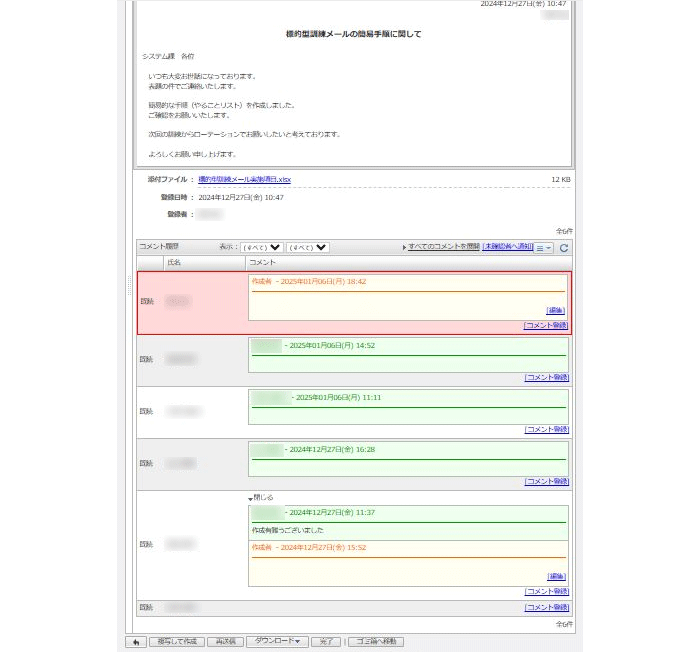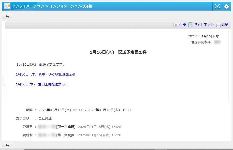 [インフォメーション]は、特定のメンバーやグループに対して情報を掲示・共有する際に非常に有効です。同社の総務課では、年末調整や健康診断など、グループ企業全体に周知すべき情報をまとめてアップロードしています。これにより、従業員全員が必要な情報を迅速かつ確実に受け取ることができるようになりました。
