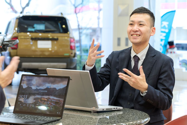 トヨタ自動車の新車・中古車のクルマの販売、点検・修理を事業の柱としている会社です。ほかにも自動車保険や生命保険、携帯電話の販売なども扱っています。埼玉県内で地域に密着した形で事業を展開し、これまで成長を続けてきました。2013年からモータースポーツに参戦し、クルマの魅力を発信。オール自社チームでレースに参加するなど、新しいことに積極的に挑戦する企業風土が根付いています。