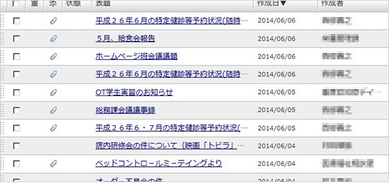 医療システムほど厳密ではありませんが、desknet's NEOでも医療的な守秘義務に関わる重要かつ繊細な情報が扱われる可能性はあります。そのような背景から、院外との交渉が必要な特定の部署を除いて外部とのやりとりには制限をかけています。desknet's NEOでは[回覧・レポート]が職員間のメールとして活用でき、情報を守りながら院内で自由な意見交換ができるのがいいですね。
