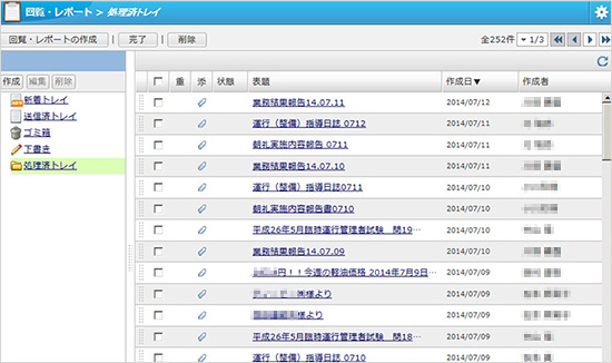 閲覧状況も確認できるので、本社から各支店への連絡・通達・告知に活用。安全目標や速度管理、法令遵守、走行マナーの強化などコンプライアンス関連の共有項目や、豪雨・雪など天候による路面状況や交通情報など、支店・営業所からの注意喚起情報を共有している。日々の朝礼の内容は必ず提示され、業務の都合で参加できなかった社員が確認できるようにしている。さらに、各部署ごとに独自の使い方も定着し利用度の高い機能。