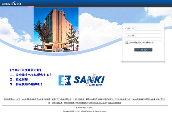ポータルとしてdesknet's NEOを活用し、業務に不可欠な基幹配送管理システムやワークフローなどへのシングルサインオンを実現。重要なリンクを集めた社内ホームページなどもレイアウトされ、ユーザーが各種システムを縦横に活用できるようにしている。