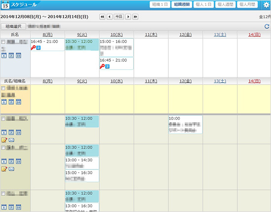 学長をはじめとする一部上職者を除く全ユーザーの予定を公開。専属のマネジメント担当者がいる副学長も、予定が入った場合は自らスケジュールを入力するなど積極的な利用が定着。最も利用度が高い機能である。
