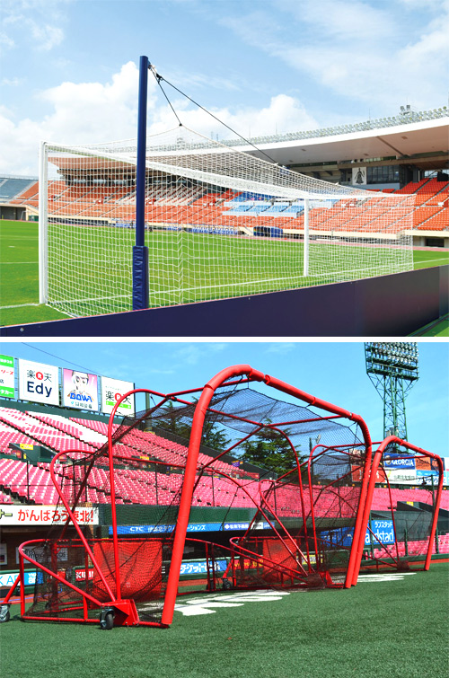 ルイ高様は、サッカーのゴールポストやテニス・バレーボール用のネット、各種スコアボードなど、競技場や学校、公園などに設置されている屋外運動設備・器具を開発、販売しています。国立霞ヶ丘競技場や大阪長居スタジアム、東北電力ビッグスワンスタジアムなど、全国の名だたる競技場・スタジアムに納品実績があり、業界では広く知られた企業です。