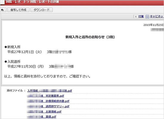 たとえば新規にご入所いただく際には、受入体制を整えるため事前に入所判定会議を行います。その際、入所者の身体状態、病院資料、ご家族や経済状況といったすべての専門資料を医師やケースワーカーなど参加者全員に出力し膨大な量になっていました。