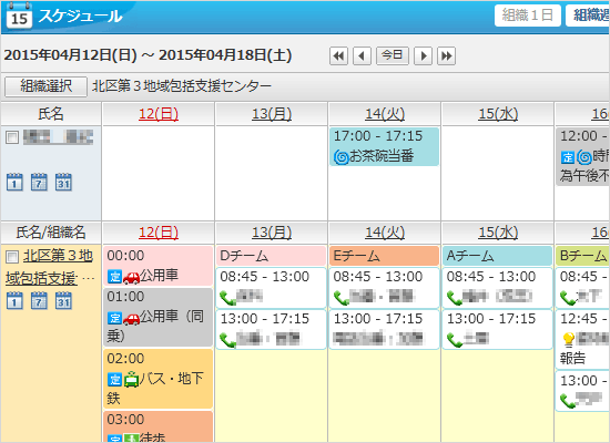 今までグループウェア未導入だったケアマネージャーが所属する居宅介護支援事業所等で拡がりました。ケアマネージャーの業務は日々各戸を訪問する外勤の職場です。市民の方からお問合せがあった際にも、誰が今どのお宅へ訪問しているのか、以前はホワイトボードや紙の予定表に頼るしかありませんでした。desknet's NEOなら瞬時に訪問先が分かりますし、回覧・レポートで組織内の連絡や資料共有も行っています。さらに、職員の自発的アイデアで、外出時の移動手段が瞬時に分かるよう「公用車・自転車・徒歩」をアイコン表示しています。緊急訪問や認定調査などの面談時に、現場に誰がいちばん効率良く訪問できるかすぐに分かるようになりました。今後も実務の中から新たな活用アイデアが出てくることに期待しています。