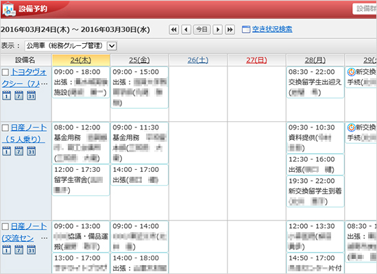 本部・各学部の会議室や公用車を管理。大小多様な会議室を目的に合わせ効率的に運用。eラーニングなどPC設置の講義室も管理。以前の台帳管理から大幅に稼働率を改善。