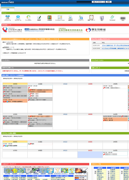 採用したのは健診システムで協力関係にあるベンダーさん(株式会社九州日立システムズ)で、健診系とdesknet's NEOの双方を任せることで、活用の可能性がさらに拡がるという期待が持てました。