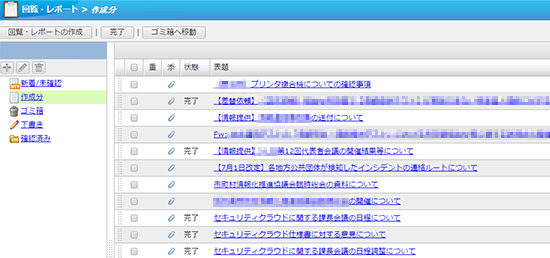 [回覧・レポート]を活用した職員間の迅速な資料・情報共有や意見交換でしょうか。