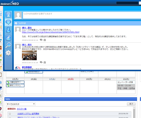 desknet's NEOに乗り換える前がそうだったのですが、慣れというのは恐ろしいものです。人は往々にして「今あるツールで、できることがすべて」という認識になってしまい、世の中にはもっと革新的な技術や情報共有の手法があることに意識が向かなくなる瞬間があるのだと思います。その点desknet's NEOは、つねに最新の技術トレンドを盛り込んだバージョンアップや機能強化で、絶えずユーザーを刺激してくれます。