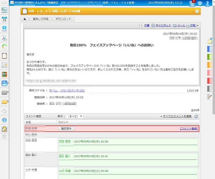 当然、顧客情報のやりとりなども[回覧・レポート]で行いますので、その連携が強化されたことで、弊社は生産性の向上にも成功し、業績拡大時の課題であった「情報共有の強化」を実現することもできました。今こうして「耐震住宅100%」の夢を追い続けられるのもdesknet's NEOのおかげです。