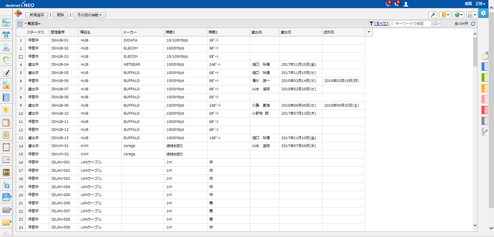 [設備予約]の延長で使ったりしていますね。通常の[設備予約]も、会議室や社用車、キッティングルーム、サーバールームなどの管理に使っているのですが、AppSuiteではキッティングに使う細かな備品などの管理をしています。弊社はキッティングを行う頻度が高いので[設備予約]ではそれらを管理しきれません。ですが、AppSuiteでキッティング備品の管理をするアプリをつくったら、管理が間に合うようになった。備品を一覧化して、使用状況が一目でわかるようにしています。しかも、「利用開始」「利用終了」とステータス変更を行うと、次の予約者に「利用可能になりましたよ」という意味の通知がいく。このアプリでキッティング備品がスムーズに回せるようになりました。